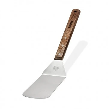 Dieser unverzichtbare Grill- und Küchenhelfer ist aus gebürstetem Edelstahl gefertigt und eignet sich gleichermaßen für Fisch, Fleisch und Gemüse. Der Holzgriff ist gut verarbeitet und liegt angenehm in der Hand. Er ist felxibel genug um Gargut jeder Größe zu bewegen und dennoch stabil genug um beispielsweise den Bratensatz vom Boden des Topfes abzuschaben. Er ist zwei Varianten verfügbar.