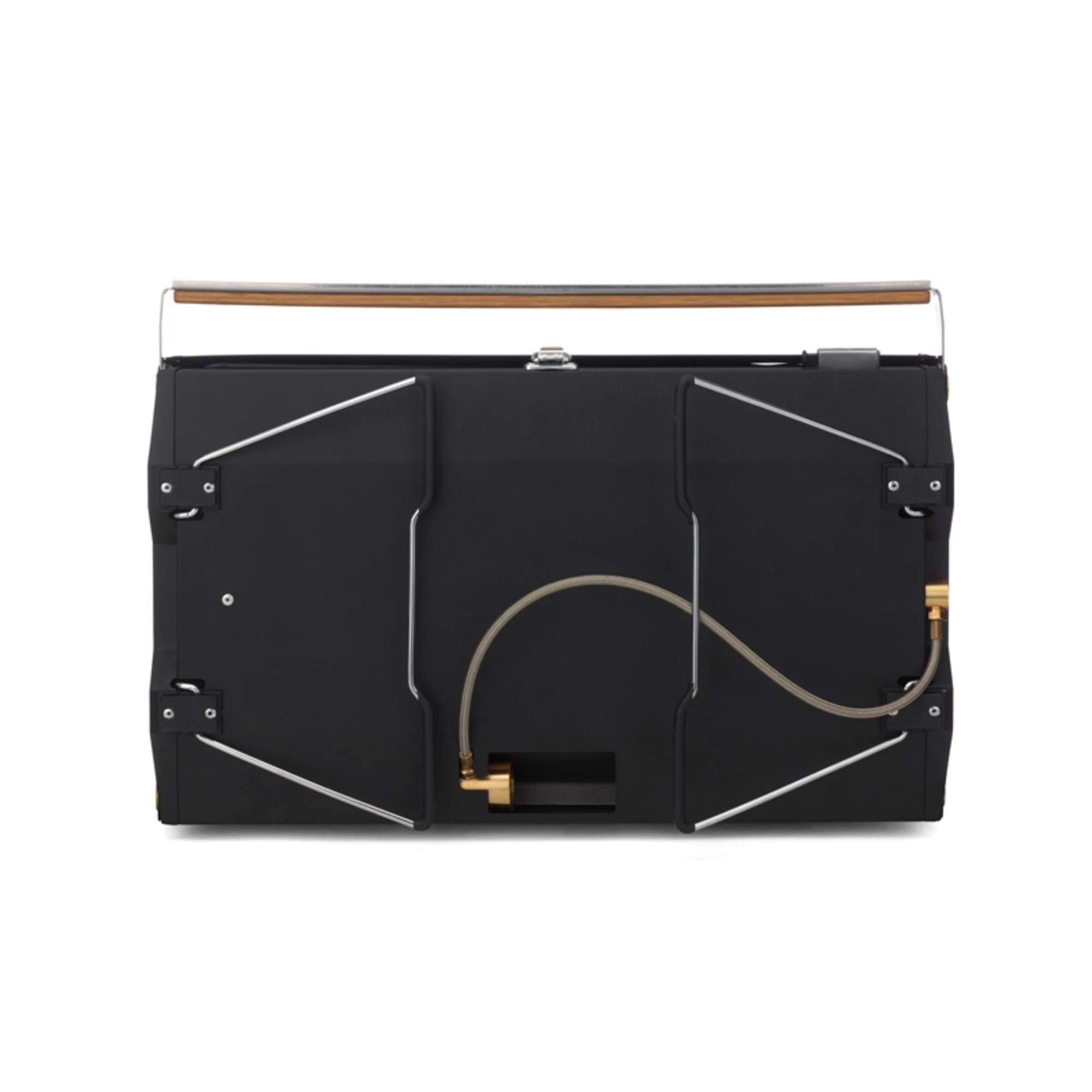 Das keramikbeschichtete Grillrost ist antihaftend und leicht zu reinigen. Zum Saubermachen wird sie einfach entnommen und danach wieder eingesetzt. Mittels horizontal angebrachter Brennröhren wird die Grillfläche gleichmäßig beheizt. Zum Transport lässt sich der Grill platzsparend zusammenklappen und verriegeln.