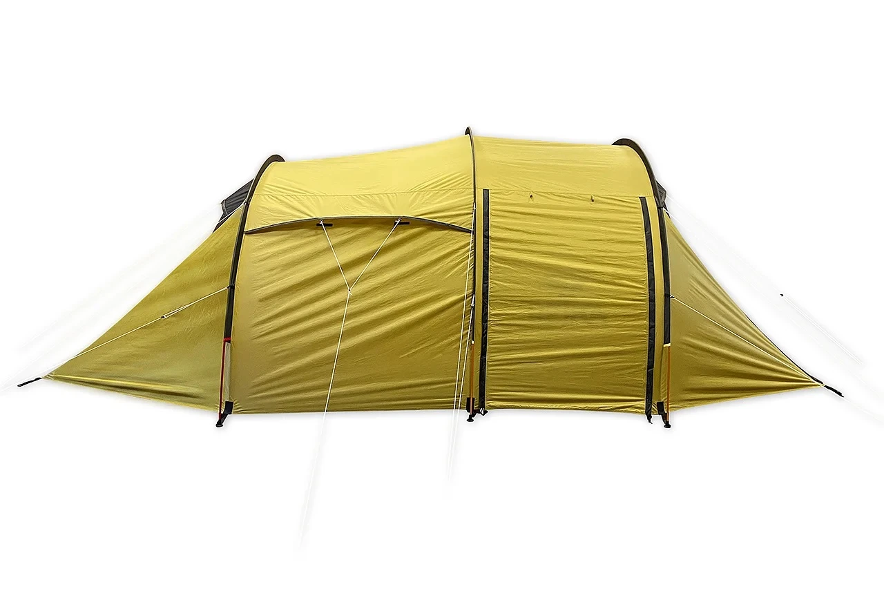 Ob für vier Personen oder nur drei mit Hund! Das Antao IV Camp ist die größte Variante der Tunnelzeltserie mit riesiger Apside.