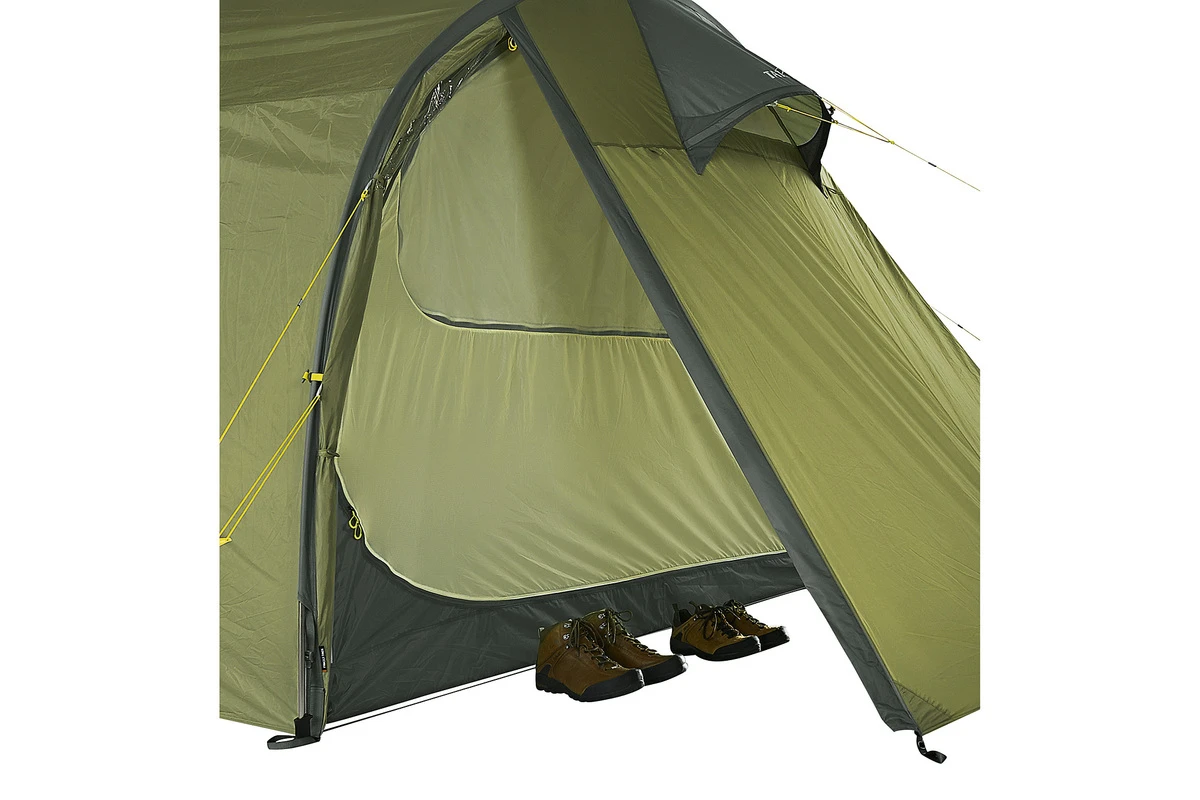 Luxusurlaub gefällig! Das Tatonka Family Trek bietet neben einer eine rießen Apside (Vorzelt). Hier entsteht auch bei schlechtem Wetter keine schlechte Laune. Das Zelt besitzt zwei Schlafkabinen, eine für 2- und eine für 3 Personen. Trotz der Größe bringt das Family Camp lediglich 11.800g auf die Waage und verschwindet so im Kofferraum, ohne groß zu stören.