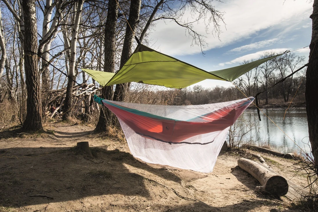 Leichtes und komfortabel ausgestattetes Tarp für die Hängematte oder Solo.